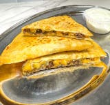 Mild Cheddar and Monterey Jack cheese in a tortilla, served with sour cream. Customize with toppings.